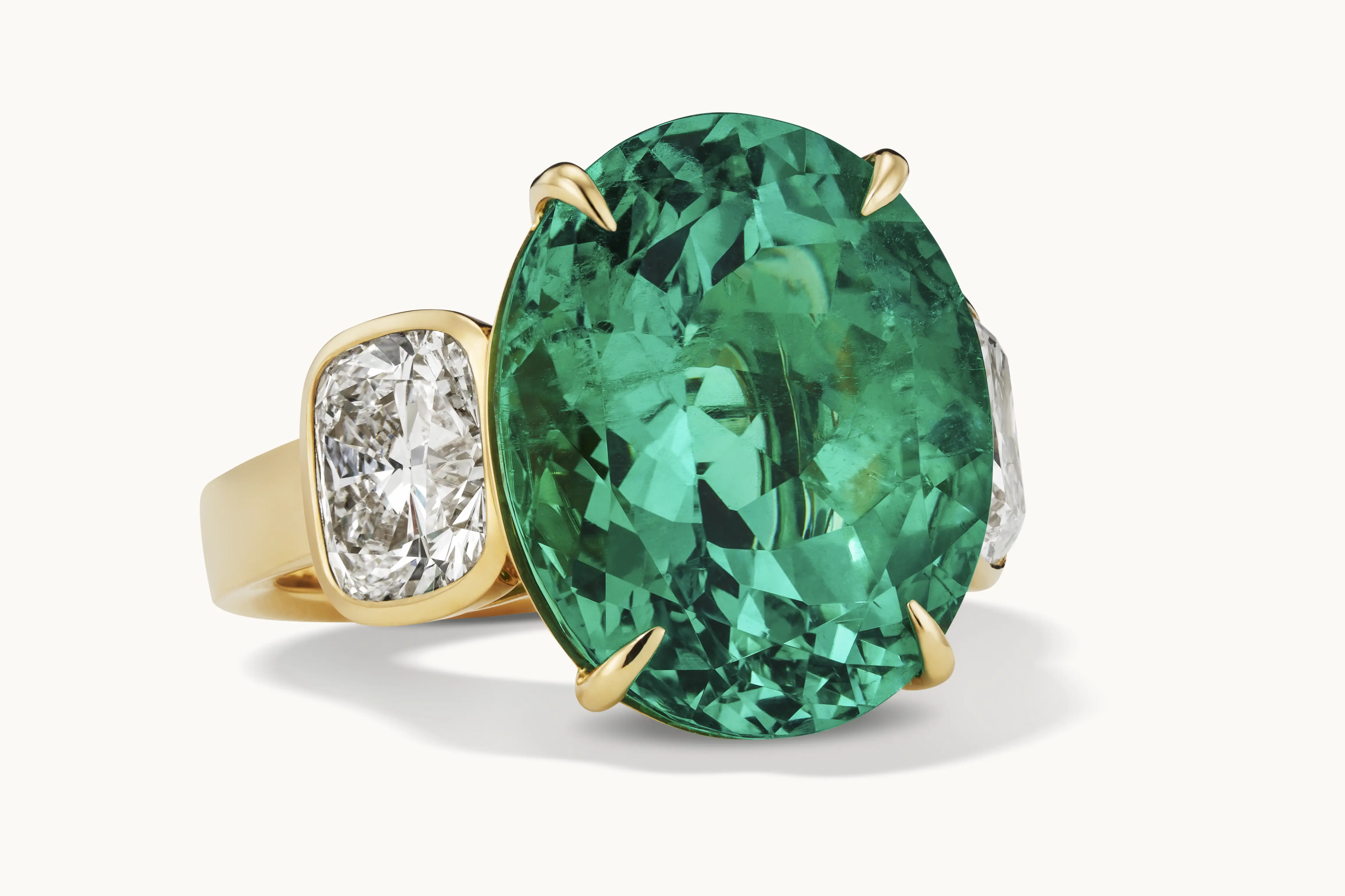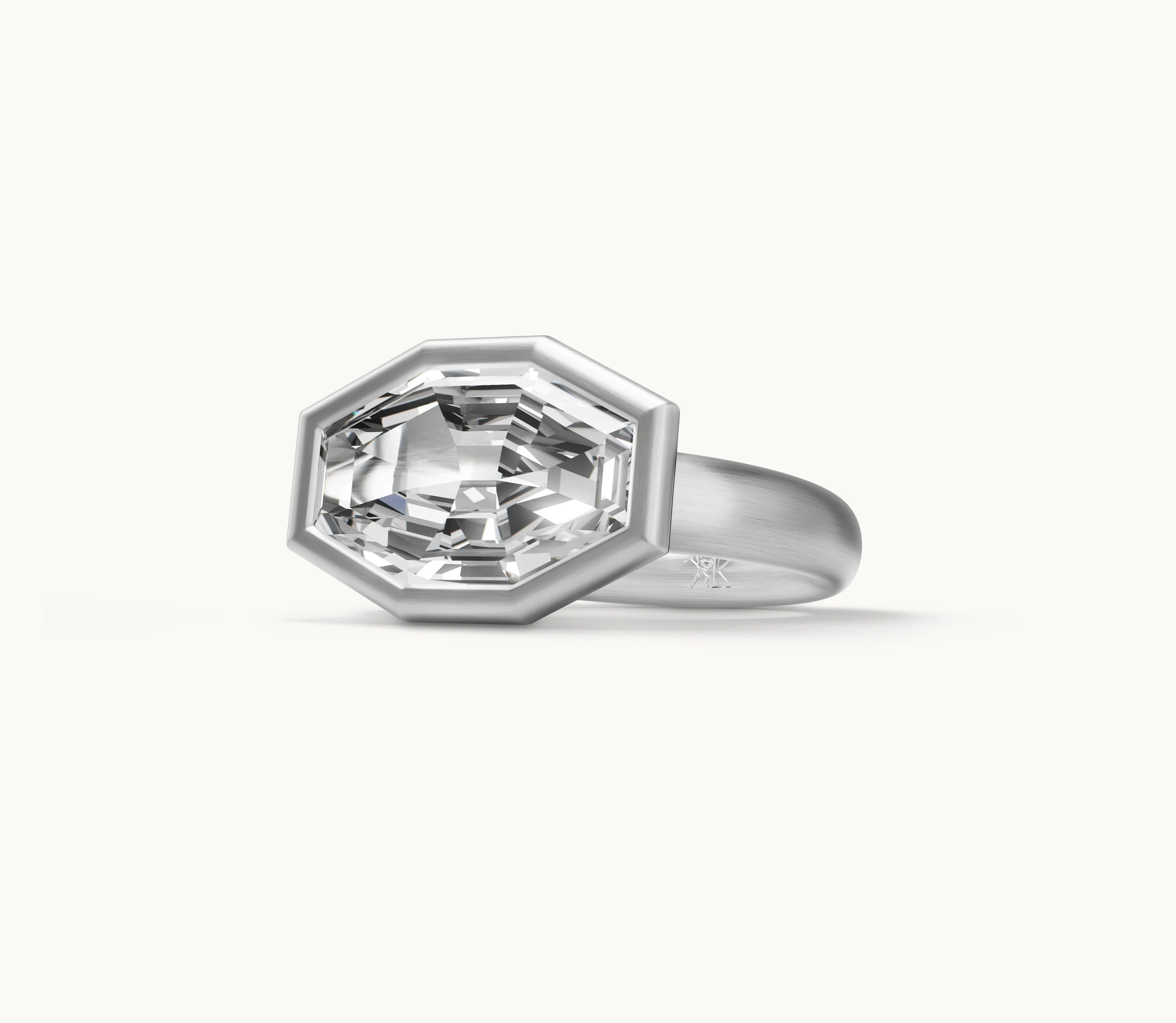 Krieger arbeitet mit Stein, Form und handwerklicher Präzision. Jedes Schmuckstück wird im Atelier in Idar-Oberstein gefertigt – gefasst und vollendet von Hand. Die Gestaltung folgt klaren Proportionen und einer