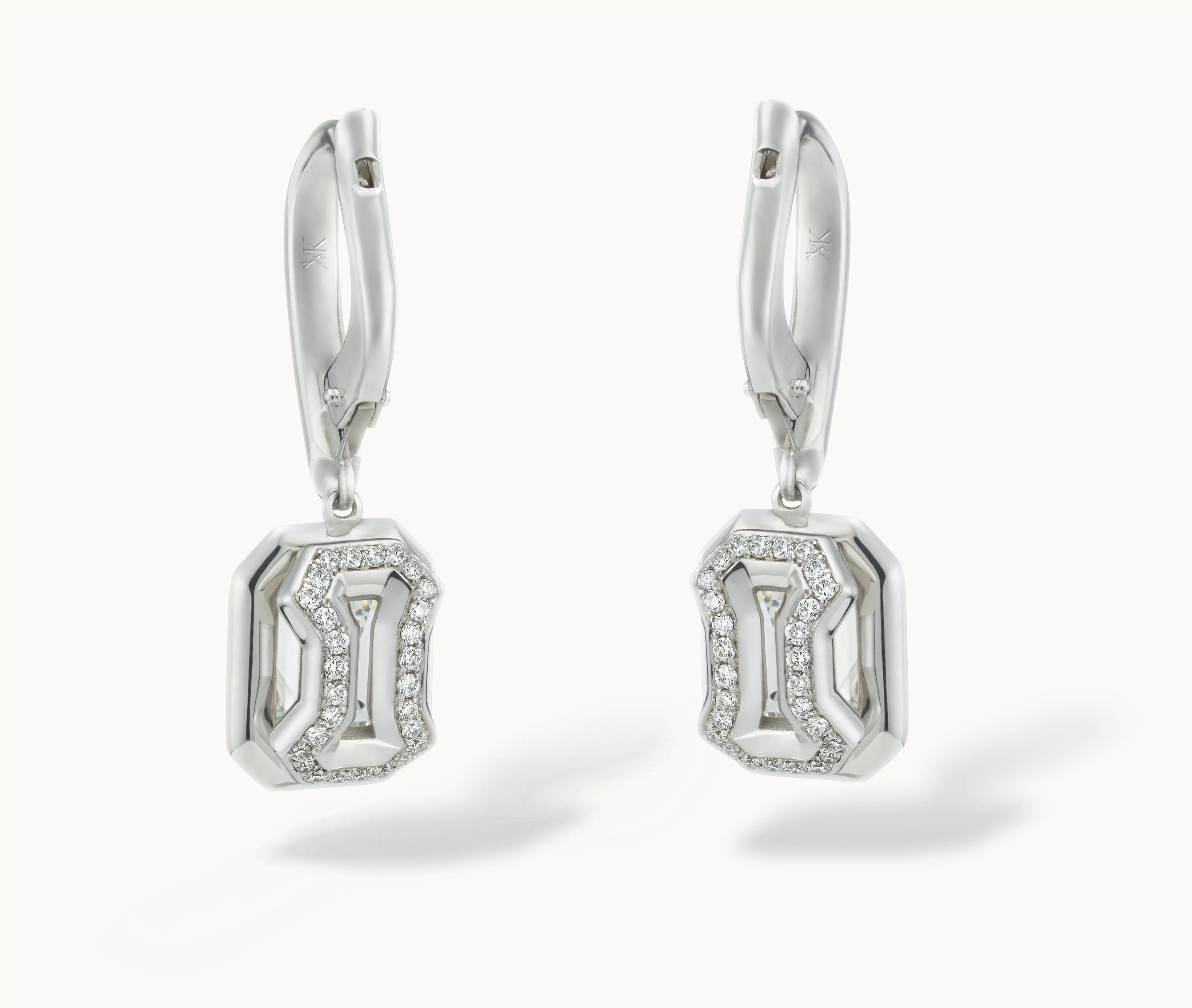 H. Krieger Ohrhänger, 750er Weißgold mit Diamanten im Smaragd-Schliff von insgesamt 3,07 ct. und Brillanten von insgesamt 0,16 ct.